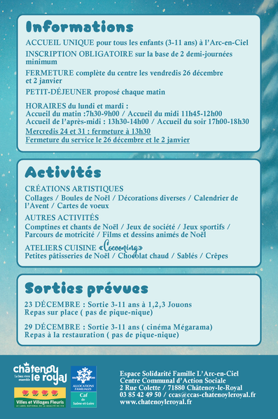 Les inscriptions débutent 15 jours avant chaque période de vacances.
