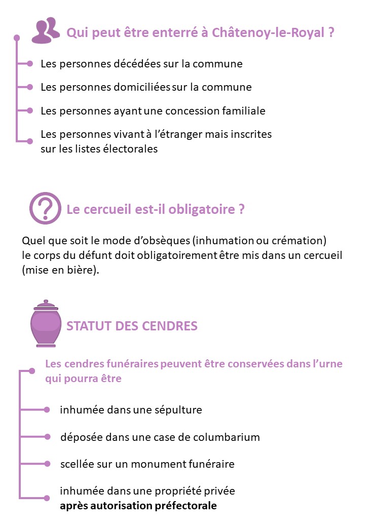 La Ville de Châtenoy-le-Royal a informatisé la gestion de son cimetière. Une affiche avec un QR code, permettant de localiser une tombe grâce à une recherche par nom, est installée à l'entrée du