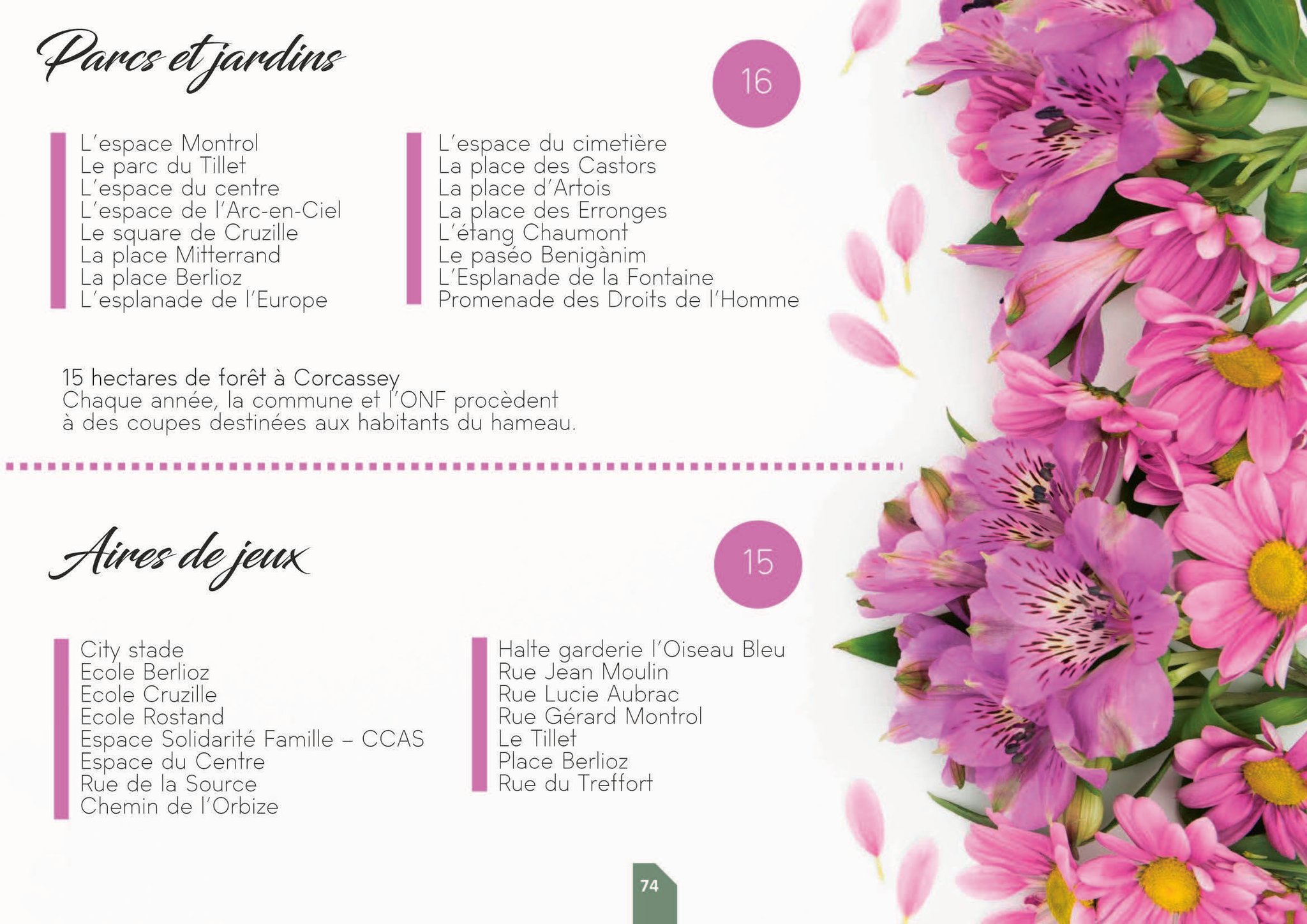 La commune possède des jardins pédagogiques situés au sein des groupes scolaires et l'espace solidarité famille.